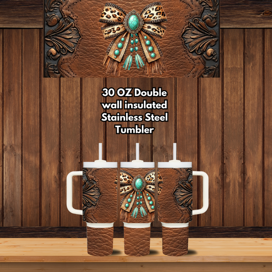 Turquoise Concho Bow — Tooled Leather 30oz Western Handled Tumblers