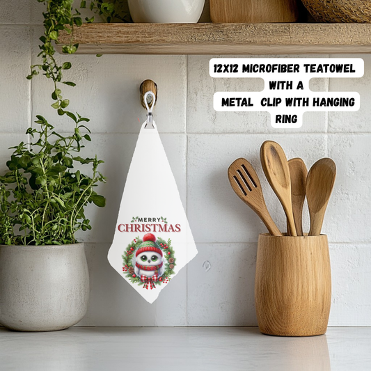 Merry Christmas Owl Clip-On Tea Towel – 12x12 Microfiber Holiday Collection