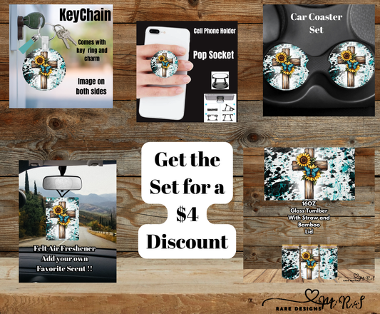 Turquoise Cross Cowhide Splash Gift Set — Tumbler, Car Coasters, Keychain, Pop Socket & Air Freshener