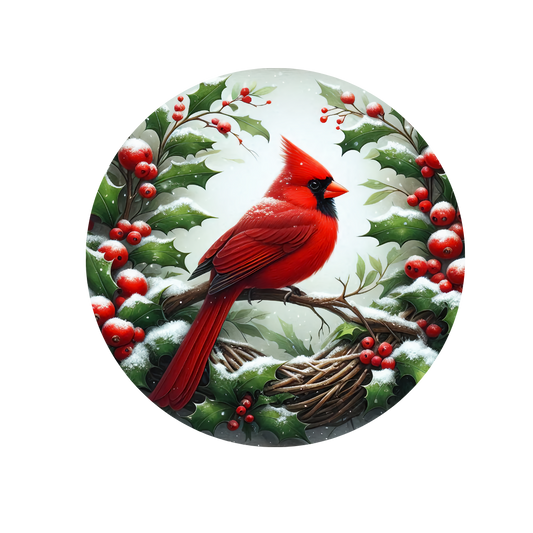 Cardinal Welcome Round Door Sign – Holiday Rope-Trim Hanging Décor