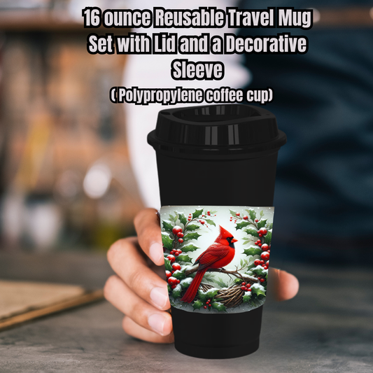 Cardinal Holiday Travel Mug Set – 16oz Reusable Coffee Cup with Lid & Decorative Sleeve