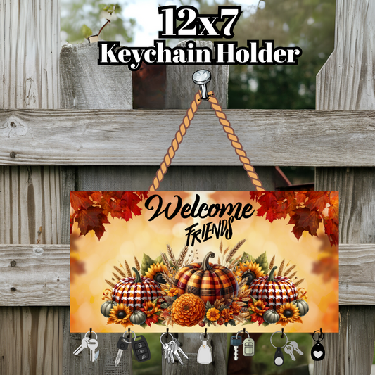 Welcome Friends Fall Pumpkin Keychain Holder – 12x7 Wall Organizer