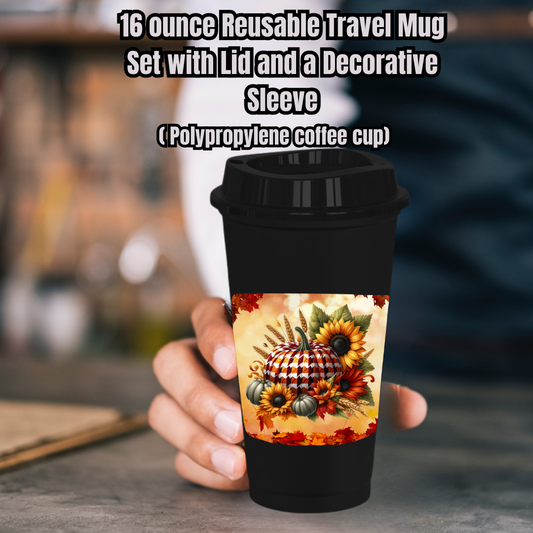 Autumn Pumpkin Patch Travel Mug Set – 16oz Reusable Coffee Cup with Lid & Sleeve