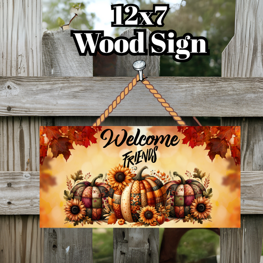 Welcome Friends Autumn Pumpkin Door Sign Collection