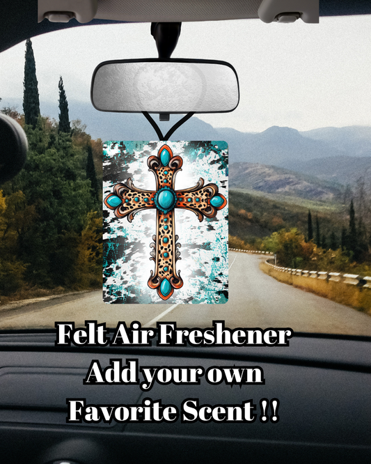 Turquoise Faith Floral Cross Felt Air Freshener (Add-Your-Scent)