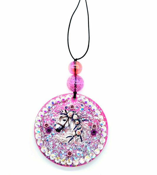 🌸 Enchanted Rose Horse Car Charm (Double-Sided)