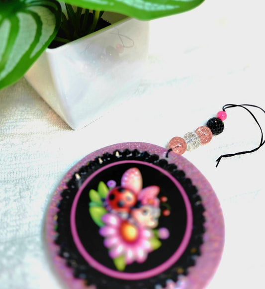 Ladybug Blossoms Car Charm & Clip Set