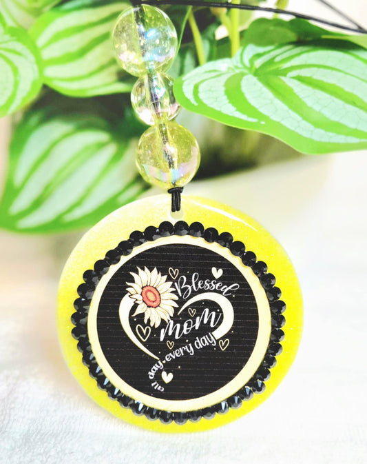 Blessed Mom Sunflower Car Charm & Clip Set