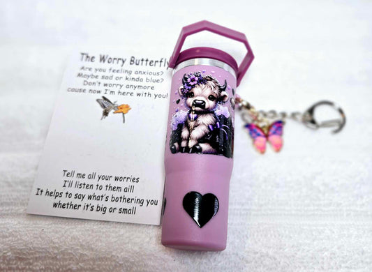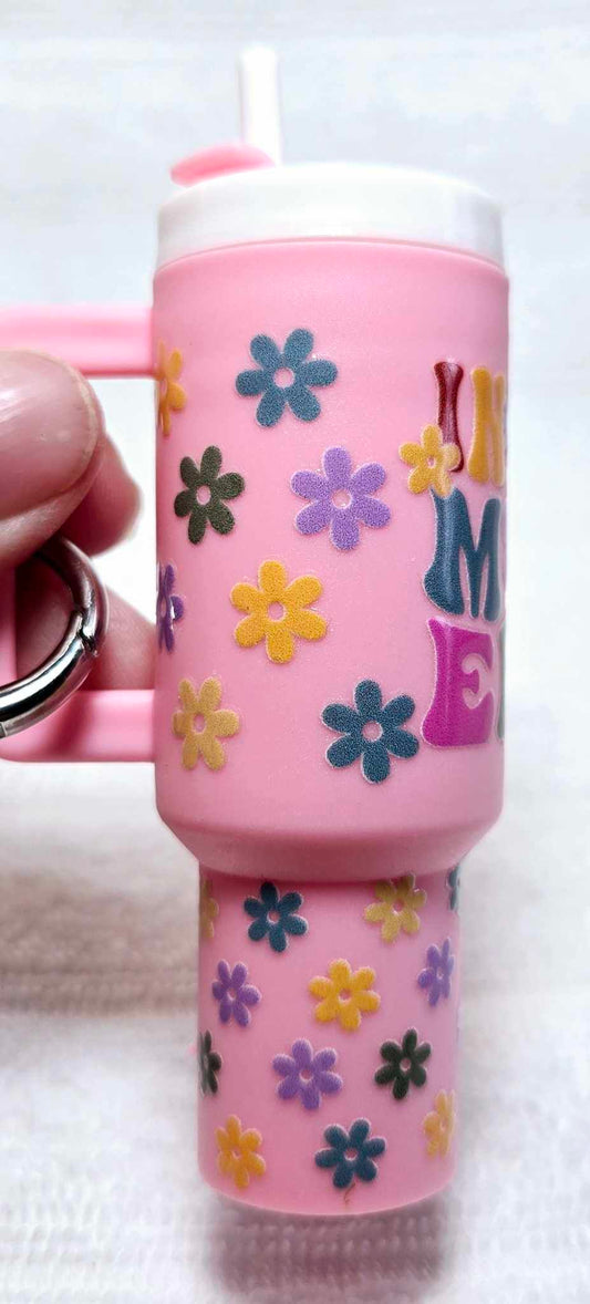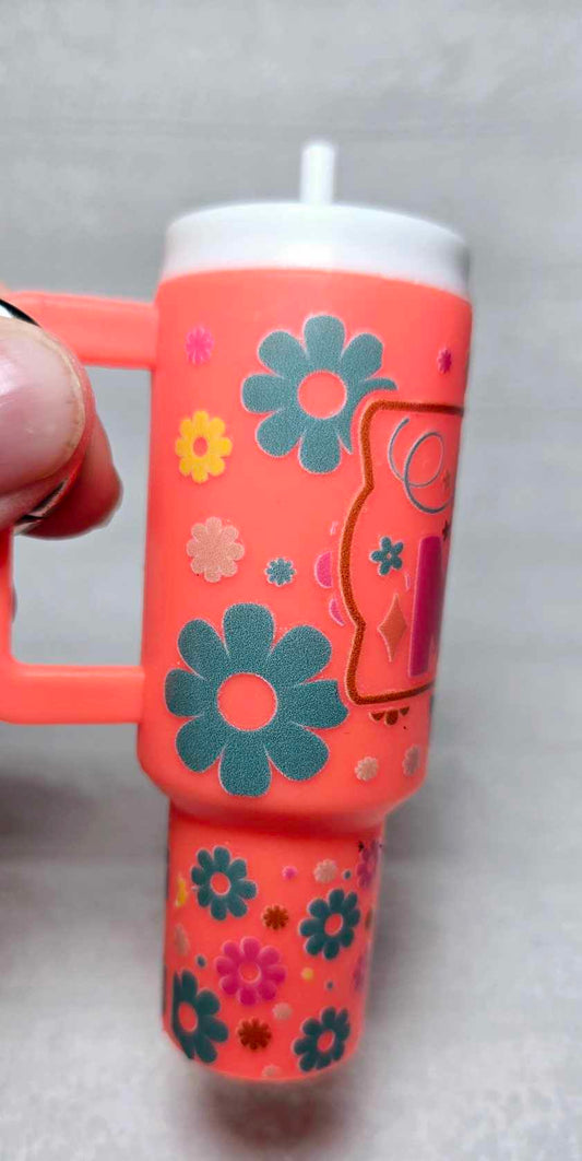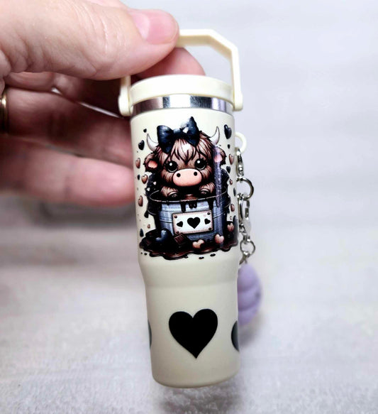 🌻 Mini Sips Keychain Tumbler – Floral Cow Edition