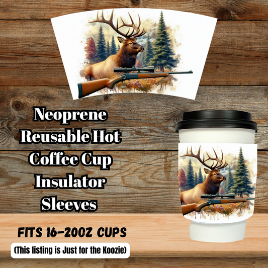 Elk Hunter Hot Cup Koozie Collection — Neoprene Reusable Coffee Cup Insulator Sleeves (Fits Most 16–20oz To-Go Cups)