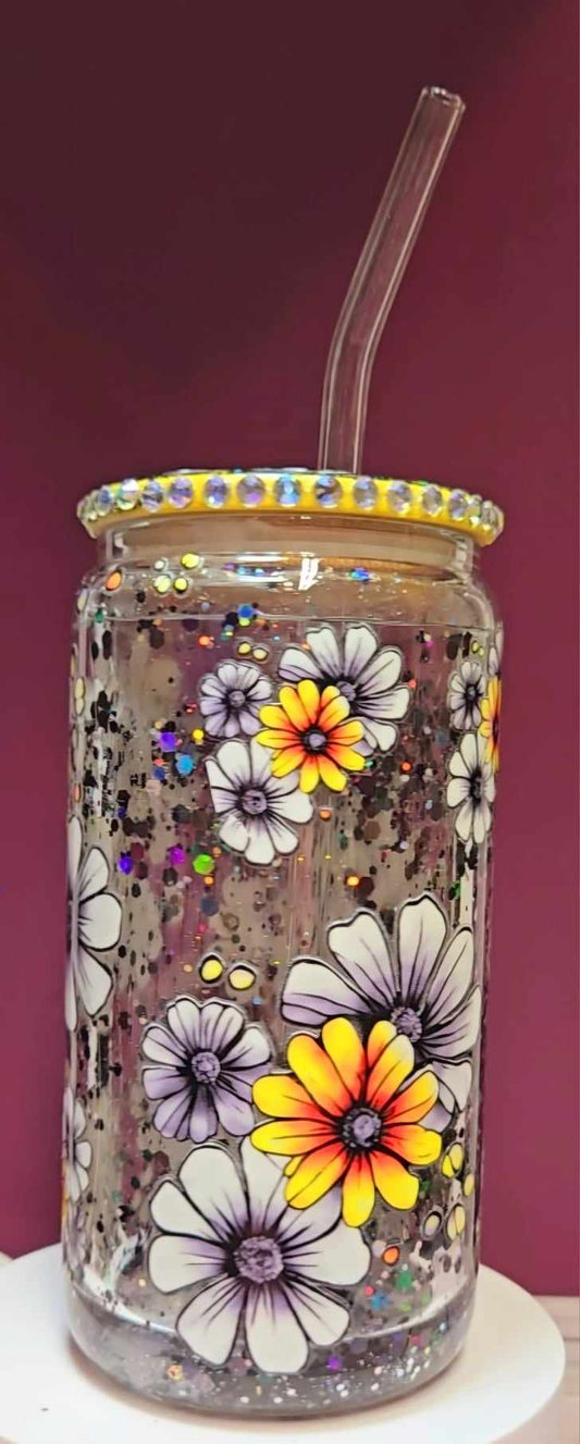 Festive Floral Sparkle Snowglobe Tumbler