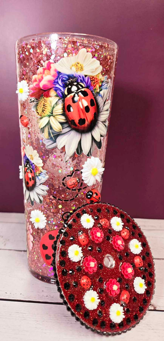 Ladybug Delight Snow Globe Tumbler with Decorative Lid