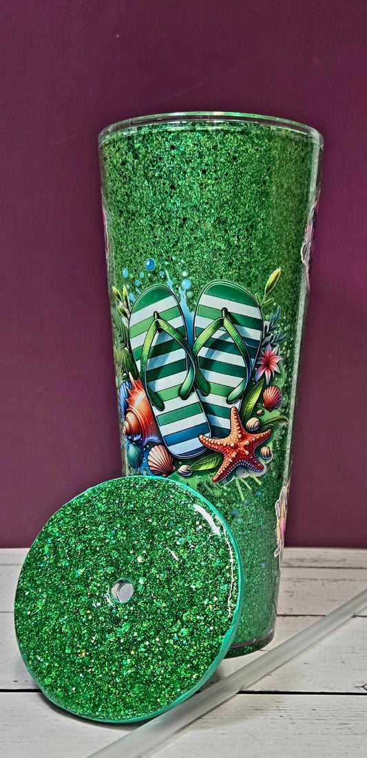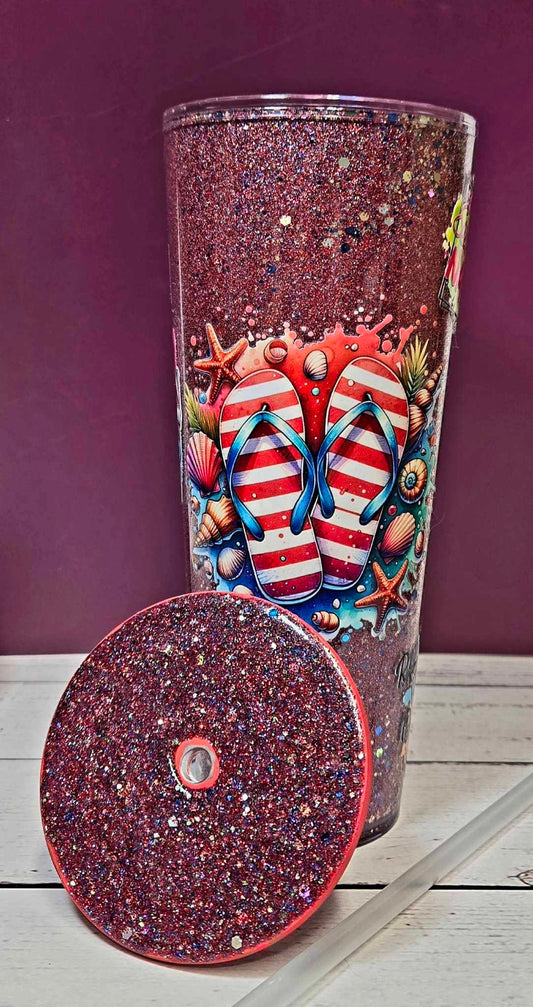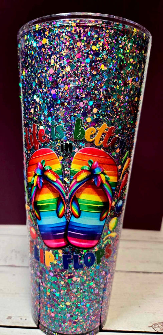 Summer Sparkle Flip Flop Glitter Tumbler