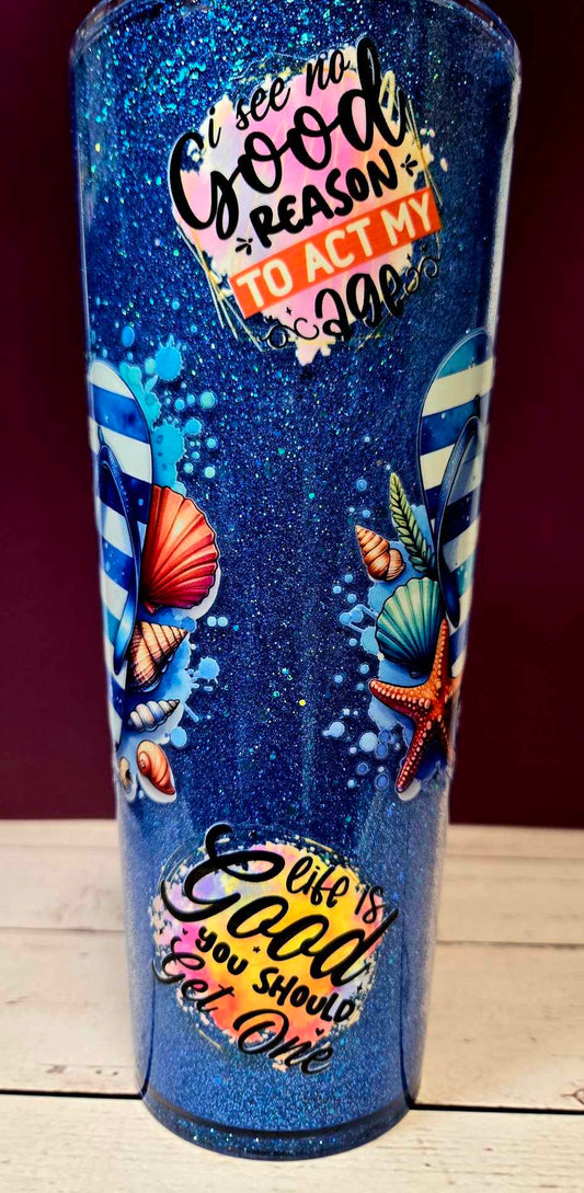 Sassy Seas Blue Glitter Tumbler