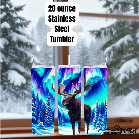 Northern Lights Moose 20oz Stainless Steel Tumbler with Straw