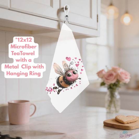 Bee Cozy Collection – 12x12 Microfiber Tea Towels with Metal Clip & Hanging Ring by Mrs. Rare Designs