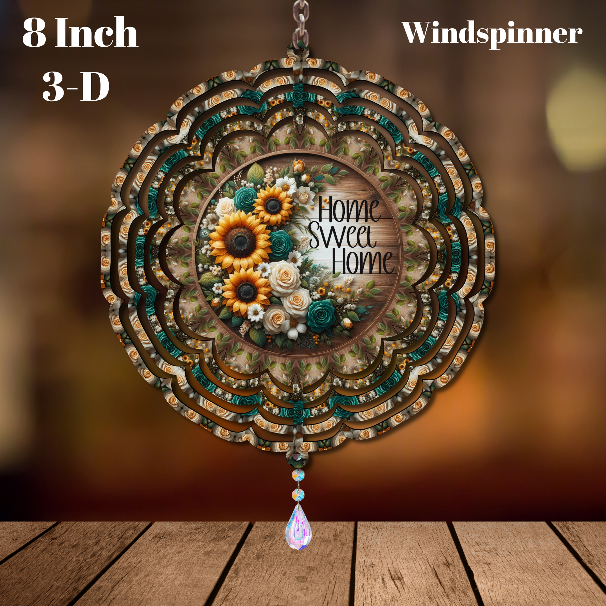 Add a heartfelt touch to your home’s entrance with the Home Sweet Bloom Spinner! This 8-inch 3D windspinner features a charming wooden background adorned with bright sunflowers, teal roses, white blooms, and the classic phrase “Home Sweet Home.” With soft rustic elegance and swirling layers, it’s a warm welcome for every guest and a beautiful reminder of what truly matters.