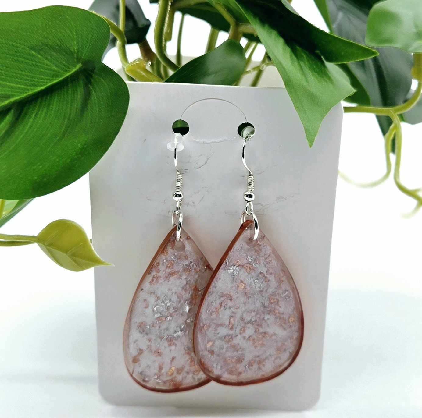 Add a touch of shimmer and elegance to any outfit with our Blush Frost Resin Drop Earrings. These handmade teardrop earrings feature a soft blush base infused with delicate silver and rose gold flakes, giving them a dreamy, frosted appearance. The lightweight resin design ensures comfortable wear all day long, while the silver-toned hooks offer a secure and stylish finish. Perfect for dressing up your everyday look or adding a subtle sparkle to a night out!