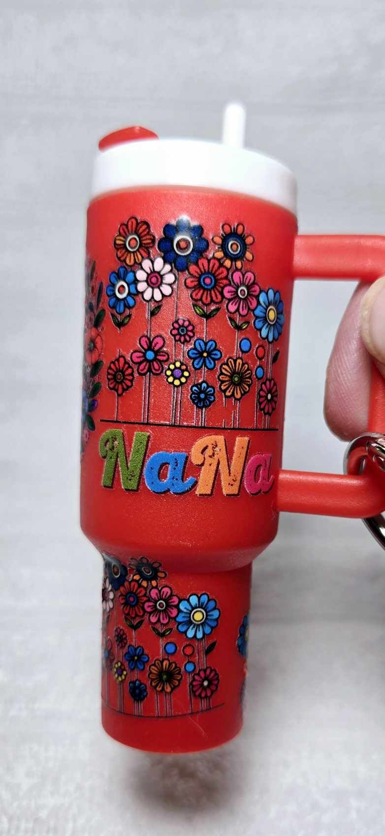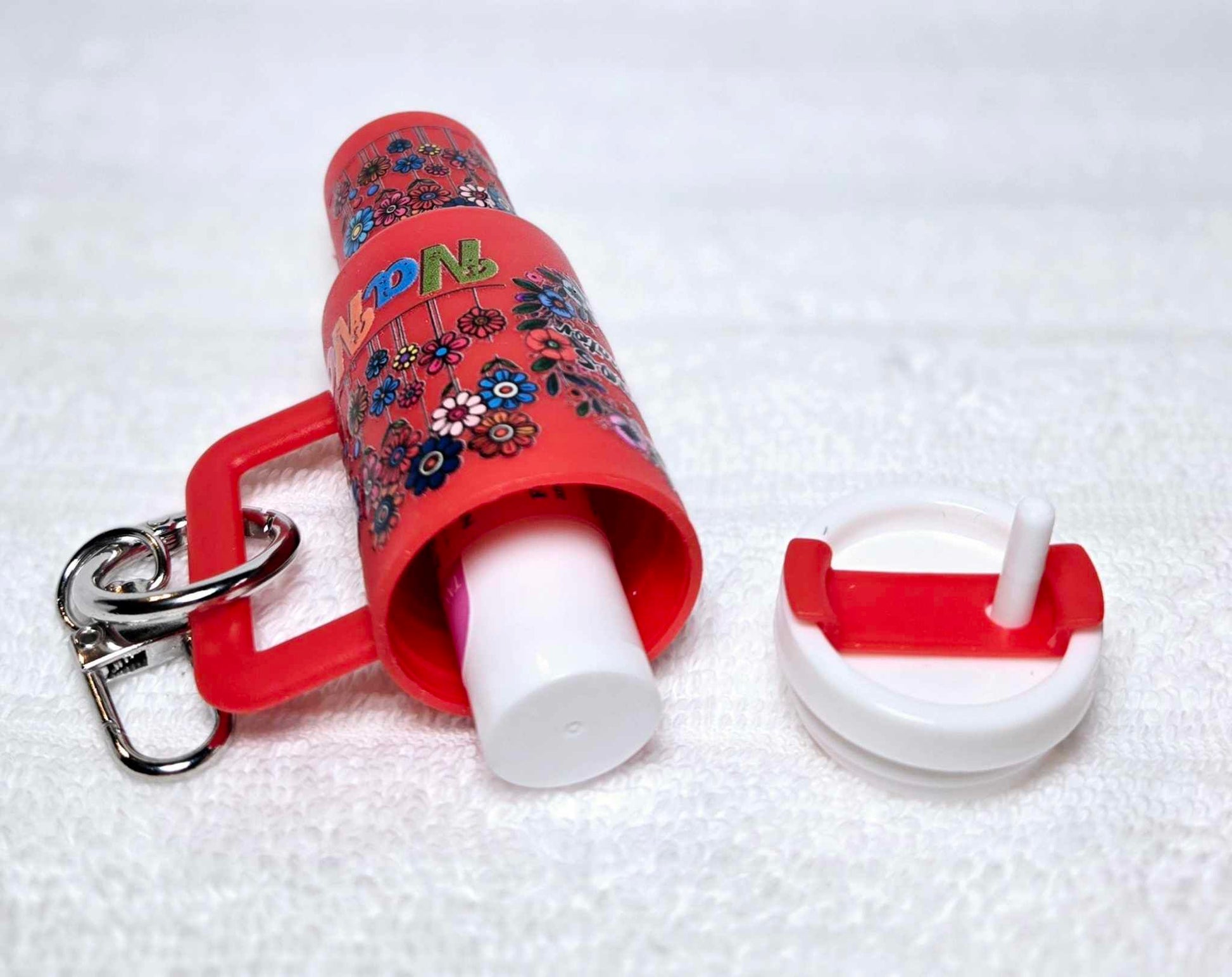 The red mini tumbler keychain features a vibrant floral pattern with the phrase "Chaos Coordinator." It's designed for on-the-go storage of small essentials like chapstick, pills, or money, and it comes with a free chapstick, adding a practical touch. This tumbler keychain is perfect for those who appreciate a touch of chaos in their coordination, offering a stylish and functional way to keep small items secure. Its sturdy build and colorful design make it an attractive and practical accessory for everyday use.