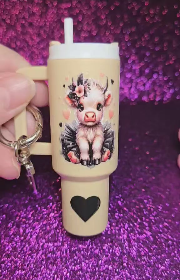 Unleash the charm with our "Charming Meadow Mini Tumbler Keychain"! This delightful little accessory is perfect for cow and floral enthusiasts alike, featuring an adorably detailed calf adorned with vibrant flowers and hearts. Crafted from high-quality materials, this mini tumbler keychain combines functionality with whimsy, equipped with a secure lid and a convenient key ring. Whether you're adding a touch of fun to your keys or gifting a friend a piece of countryside allure, this keychain is guaranteed to bring a smile. Durable and designed to stand out, it's the perfect companion for your everyday adventures!