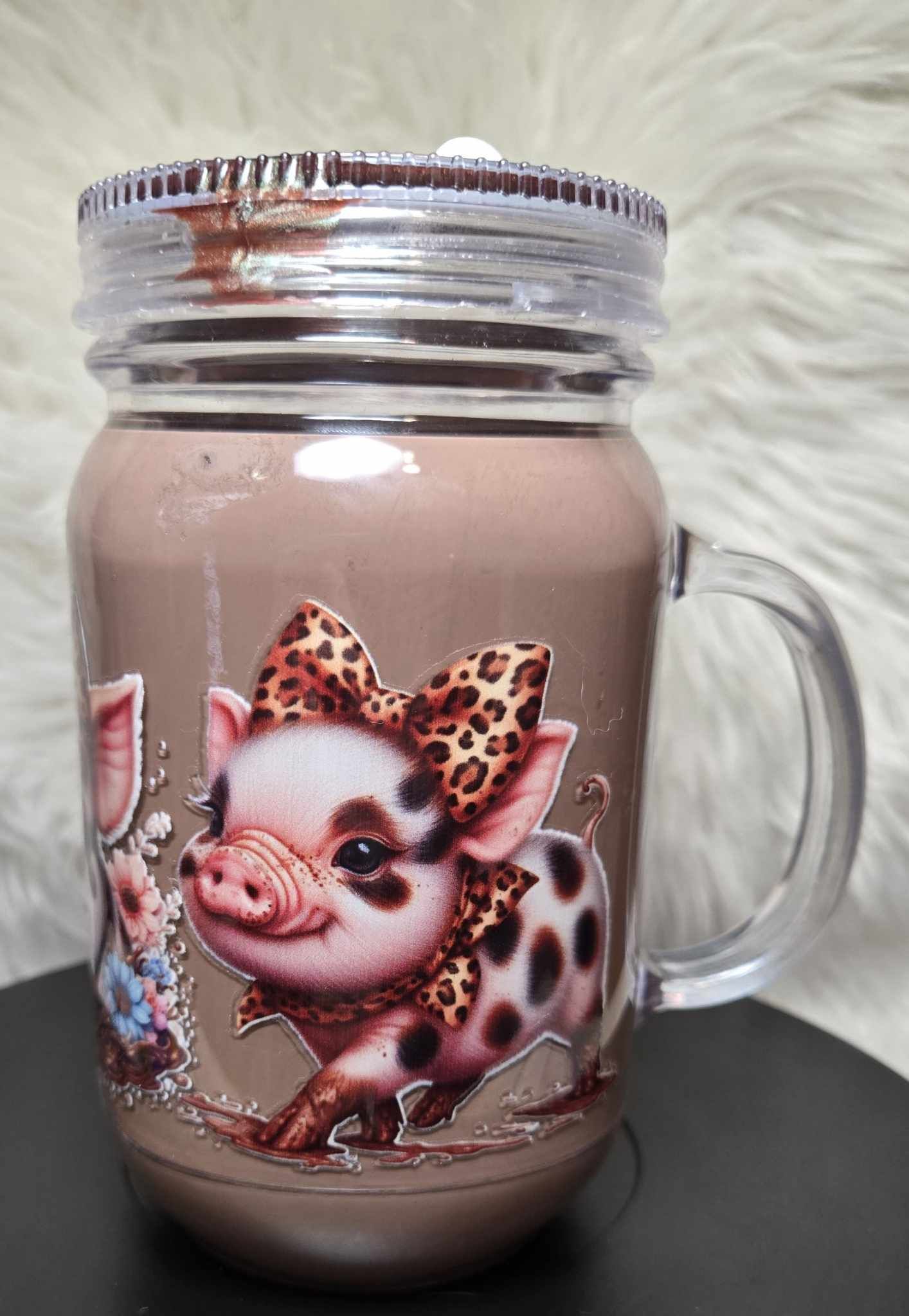 Meet the cutest addition to your daily hydration routine—the Charming Piglet Snowglobe Tumbler! This delightful 20 oz tumbler showcases a heart-melting design of a piglet adorned with a leopard-print bow, making it an instant favorite for animal lovers and collectors alike. The tumbler is crafted with a double-wall plastic construction, ensuring your drinks stay cool while providing a magical snowglobe effect with every move. Floating decorations in the lid add a playful touch, creating a whimsical look that brings joy with every sip. Whether used at home, at work, or on the go, this piglet tumbler is sure to bring smiles and a sprinkle of magic to your day. Perfect for gifting or adding a unique piece to your collection, it's not just a tumbler—it's a little piece of happiness!