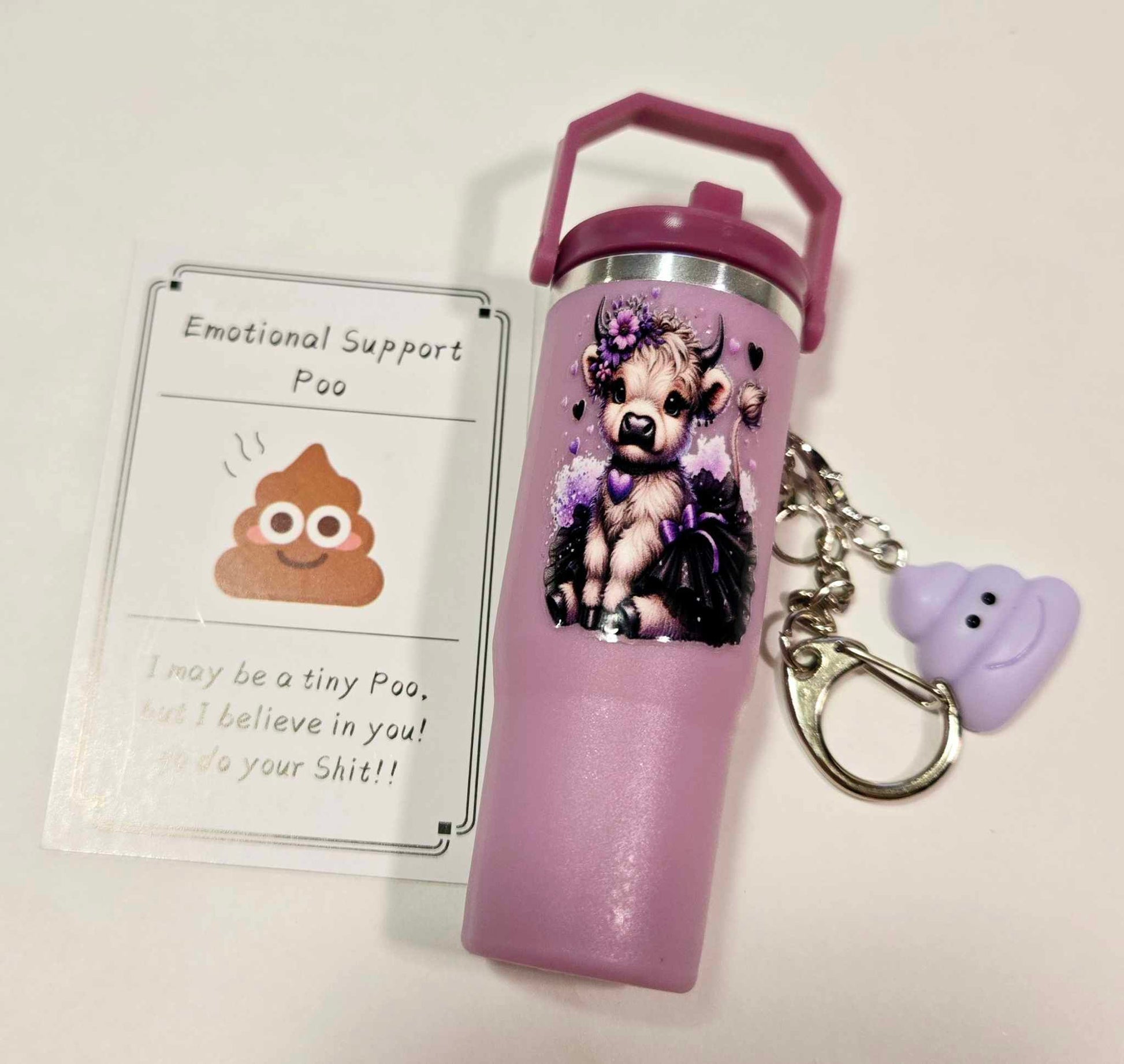 Bring a smile and a pinch of cheer everywhere you go with our "Cheer Up Charm Mini Keychains." These adorable keychains aren't just cute; they're packed with a tiny yet mighty message of encouragement! Each keychain houses a special card that reads, "Emotional Support Poo, I may be a tiny poo, but I believe in you! Go do your shit!!" Accompanied by a handy chapstick, these keychains are perfect for gifting or keeping your spirits high on the go. Choose one, or collect them all, to add a splash of joy and utility to your daily adventures!