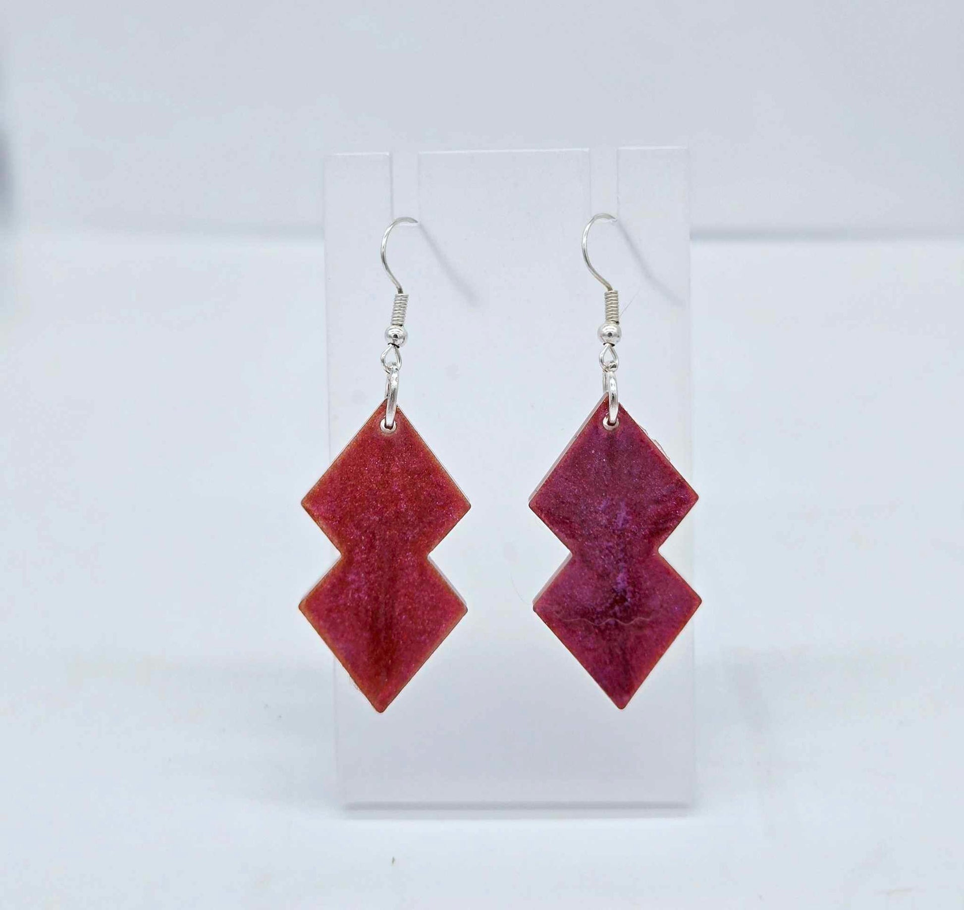 "Step into a world of bold design with our Crimson Zigzag Resin Earrings, beautifully handmade at MRS Rare Designs. Featuring a playful zigzag shape, these earrings blend classic charm with contemporary flair. Cast in a mesmerizing crimson resin infused with a light-catching sparkle, they are sure to elevate any ensemble. Lightweight and comfortable for all-day wear, these earrings are perfect for those who love to make a statement with their style."