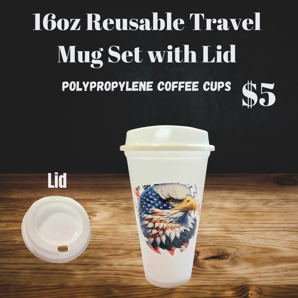 Embrace your journey with the "Freedom Flight 16oz Traveler Mug." This durable, polypropylene coffee cup is perfect for those on-the-go moments, ensuring your beverages stay at just the right temperature. Featuring a striking eagle design that symbolizes strength and freedom, this mug is not just a container—it's a statement. Complete with a snug-fitting lid to prevent spills, it's ideal for daily commutes, outdoor adventures, or cozy mornings at home. Priced at just $5, it offers both style and functionality for an unbeatable value. Elevate your travel gear with this inspiring mug that's as bold as it is practical.
