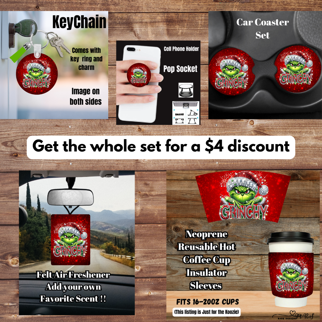 Add some sparkle and sass to your holidays with the Grinchy Sparkle Holiday Set! Each piece features a glittery rhinestone-style Grinch design thatβs both festive and fun β perfect for gifting or treating yourself.