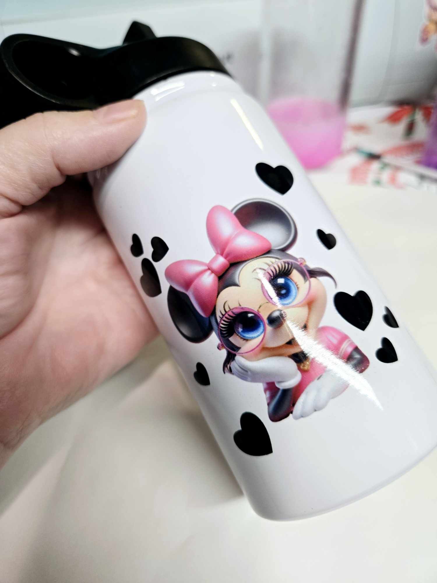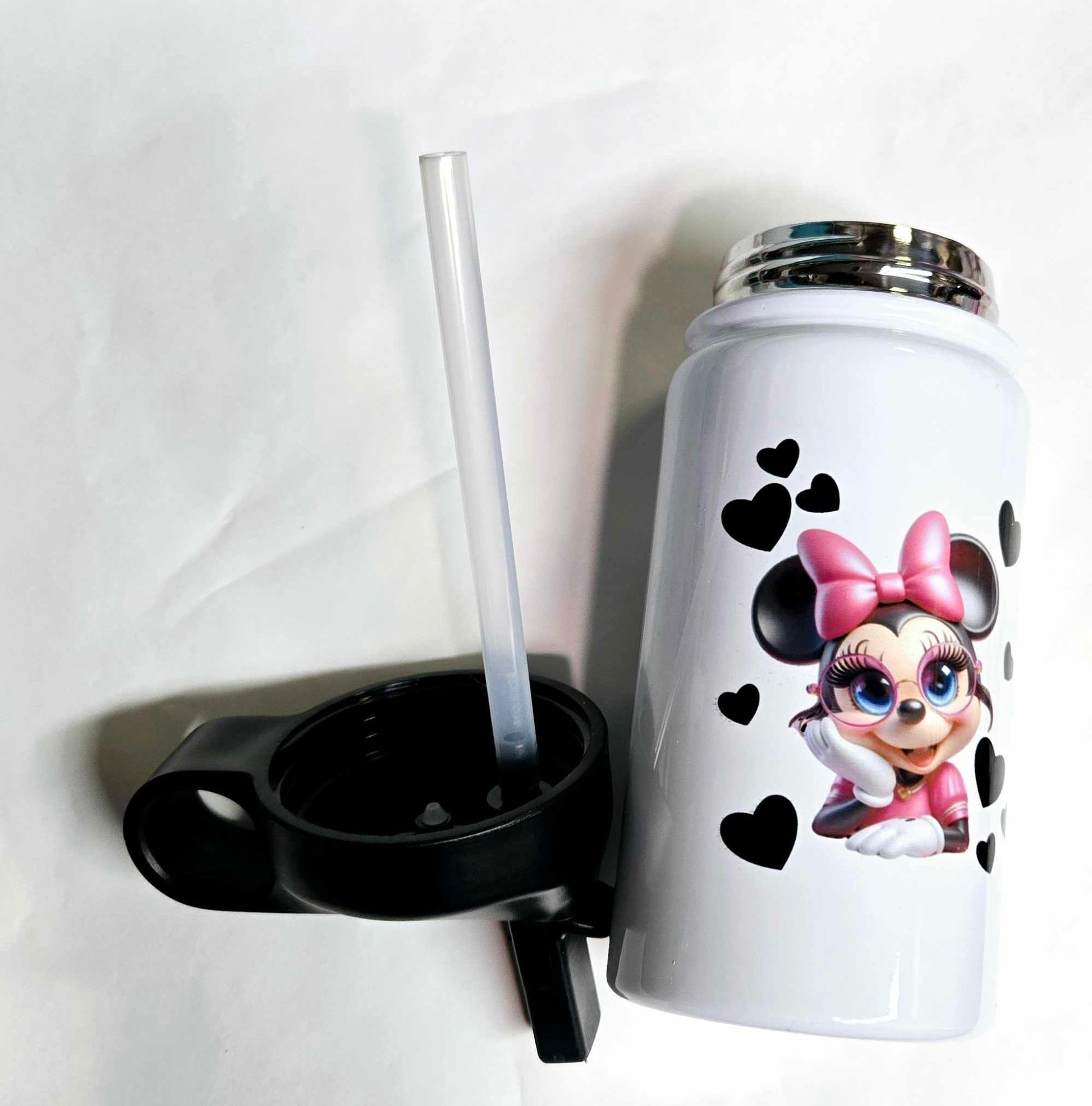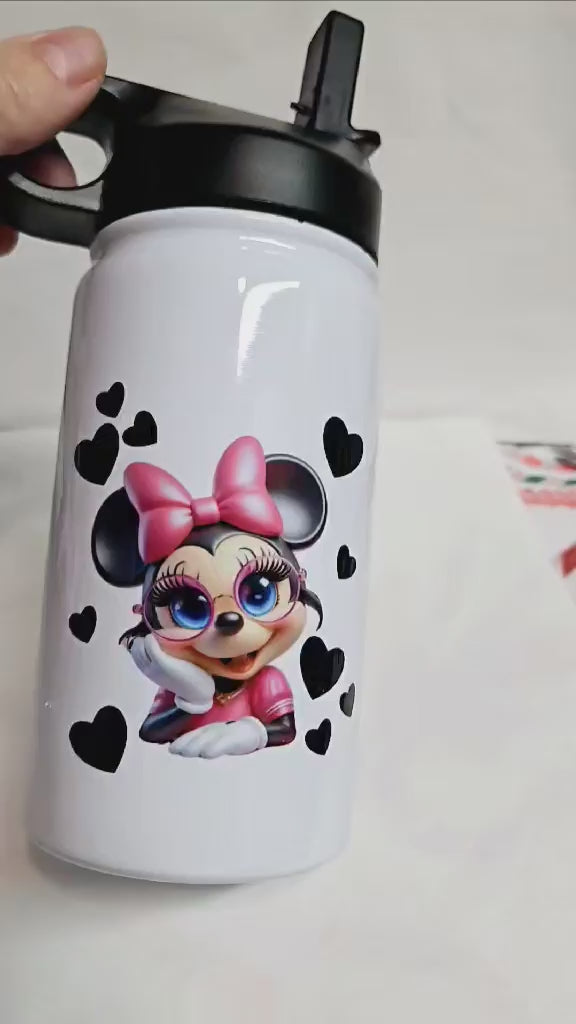 Introducing the "Heartful Minnie Sports Tumbler" - the perfect companion for your little one's daily adventures! This charming 12 oz stainless steel sports cup is designed with both style and functionality in mind. Featuring an adorable, vibrant Minnie-inspired character surrounded by playful hearts, it’s guaranteed to bring a smile to any child's face. The leak-proof design and easy-to-use black cap flip straw ensure that your child can stay hydrated without any spills, whether at school, during sports, or on the go. Priced at just $10, this tumbler is not only a delightful accessory but also an excellent value.