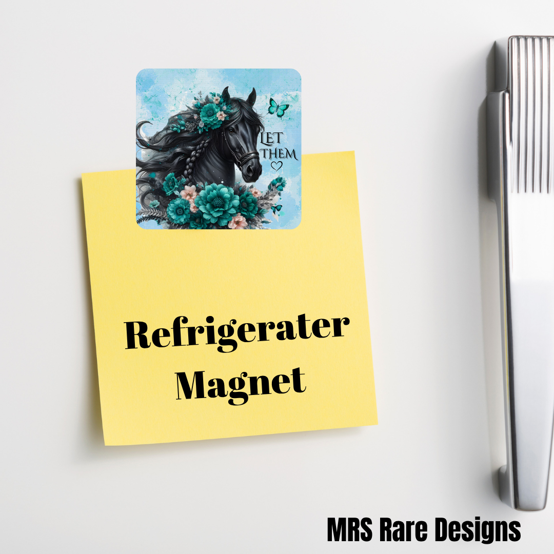 This "Let Them" Horse Art Magnet features a stunning black horse crowned with teal florals and butterflies, paired with the empowering words “Let Them”. It’s the perfect pop of personality for your kitchen, locker, workspace, or anywhere you want a reminder to stay grounded and unbothered.