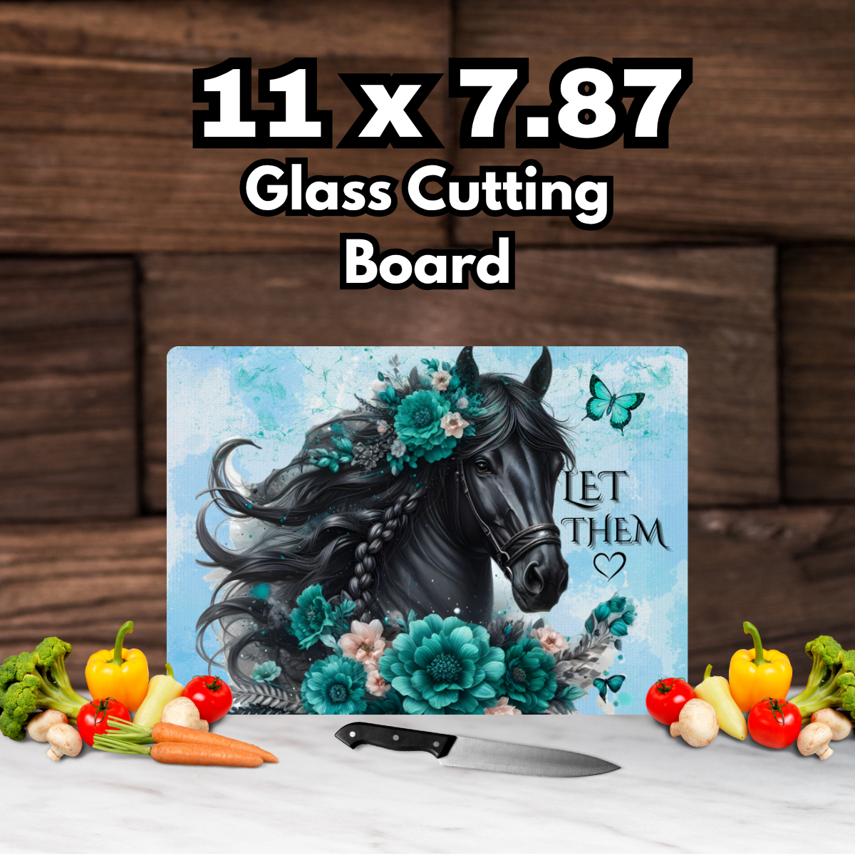 "Let Them" Horse Glass Cutting Board – 11" x 7.87