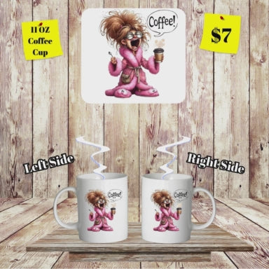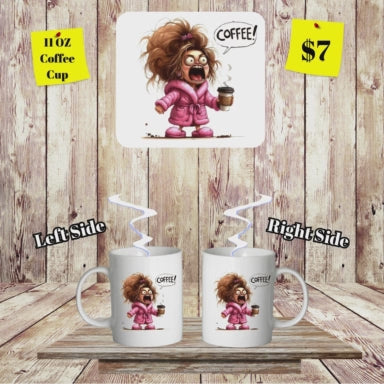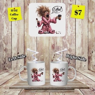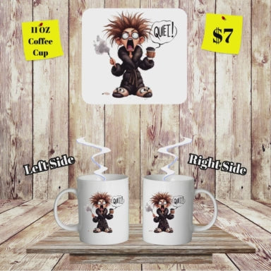 "Kickstart your mornings with a burst of energy and a dash of humor! Our 'Morning Madness Coffee Mugs' feature delightfully chaotic characters that perfectly capture the frenzy of your caffeine fix. Whether you're the silent coffee sipper or the loud latte lover, these mugs bring a smile with every gulp. Crafted from high-quality ceramic, each mug showcases a unique, vibrant character clad in a cozy robe, battling the morning with a cup of joe in hand. Choose your morning companion from our range and add a touch of whimsy to your daily routine!"