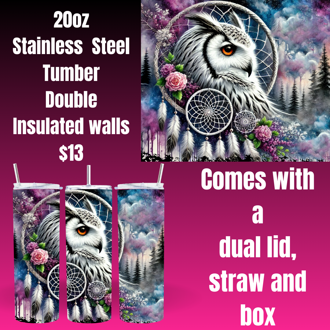 Discover the allure of the great outdoors with our "Enchanted Wilderness Stainless Steel Tumblers." This exclusive collection showcases majestic wildlife set against vibrant, mystical landscapes, each piece creating a window to a fantastical realm. Whether it's the wise owl, noble eagle, mysterious wolf, or the introspective bear, each design invites you into a world where nature and imagination collide. These 20oz stainless steel tumblers come with a handle and straw, featuring double-insulated walls to keep your drinks at the perfect temperature. Priced at just $13 each, they're not only a portal to an enchanted world but a practical companion for all your adventures. Ideal for both everyday use and as a unique gift for nature lovers and dreamers alike.