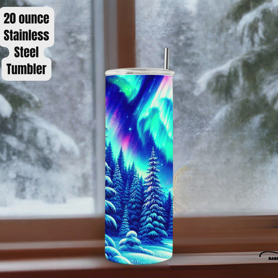 Sip under the auroras! Our Northern Lights Majestic Elk 20oz Stainless Steel Tumbler features a breathtaking winter scene—glowing northern lights, snowy pines, mountain backdrop, and a proud elk front and center. This 20oz size is perfect for everyday use and is made with double-wall stainless steel to help keep drinks hot or cold longer. Each tumbler comes with a lid, straw, and gift box, so it’s ready to sell, ready to ship, or ready to gift. Perfect for hunters, outdoorsmen, cabin lovers, and anyone who loves bold winter art. Pairs with the matching car coasters, keychain, pop socket, air freshener, and coffee accessories in the MRS Rare Designs Northern Lights collection.
