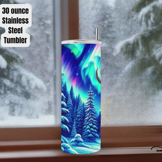 Northern Lights Moose 30oz Stainless Steel Tumbler with Straw