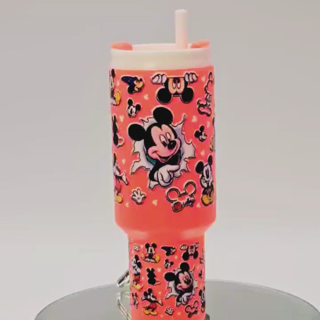Vibrant orange tumbler design with Mickey-inspired artwork 🎨