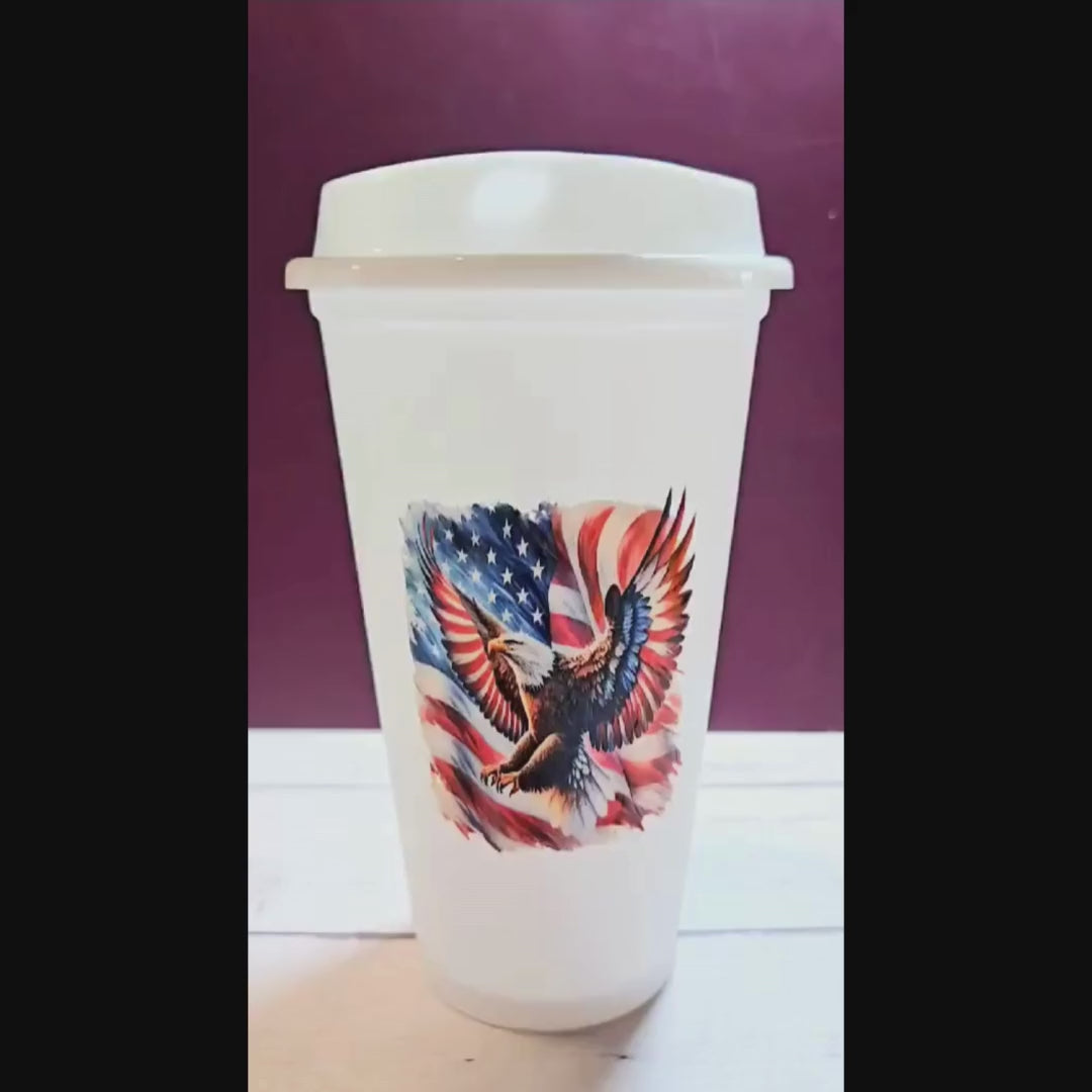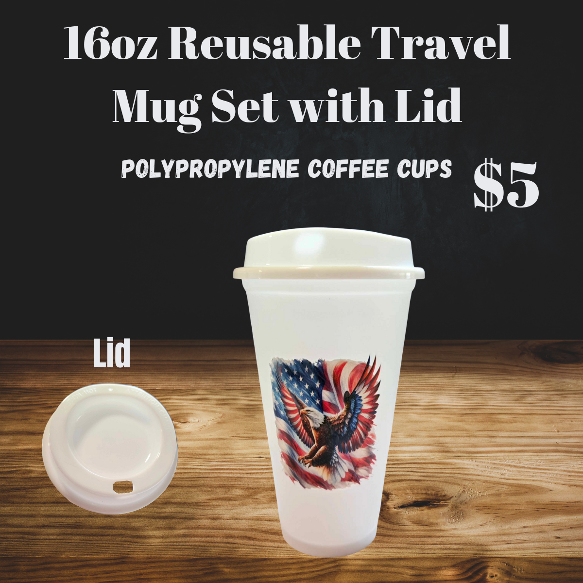 Embrace your patriotic spirit with our 16oz "Patriotic Eagle Travel Mug." This reusable travel mug is crafted from high-quality polypropylene, making it both lightweight and durable. Featuring a stunning design of an eagle soaring against the backdrop of the American flag, this cup symbolizes freedom and strength wherever you go. Ideal for coffee enthusiasts and patriots alike, it comes with a snug-fitting lid to keep your beverages secure and warm. Perfect for your daily commute, office, or outdoor adventures. Get yours today and celebrate your national pride one sip at a time!