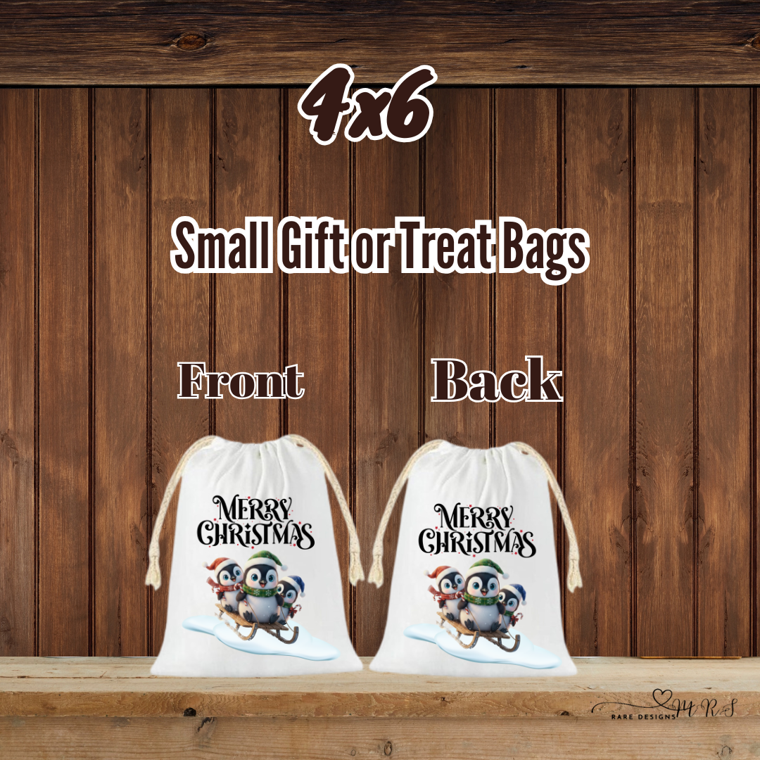 Wrap the cutest holiday surprises with our Penguin Pals “Merry Christmas” drawstring bags! Each 4×6 small gift bag features the cheerful penguin artwork on both front and back (choose Sledding Penguins or Snowy Penguin Trio). Reusable and lightweight with an easy cinch closure, they’re perfect for candy, gift cards, jewelry, ornaments, party favors, teacher gifts, and stocking stuffers. Adorable look, mess-free wrapping, and ready for Santa’s workshop—mix and match designs to make every package merry!