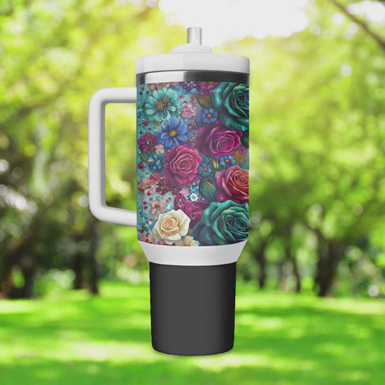 PowerBloom Affirmation Floral 40oz Handled Stainless Steel Tumbler