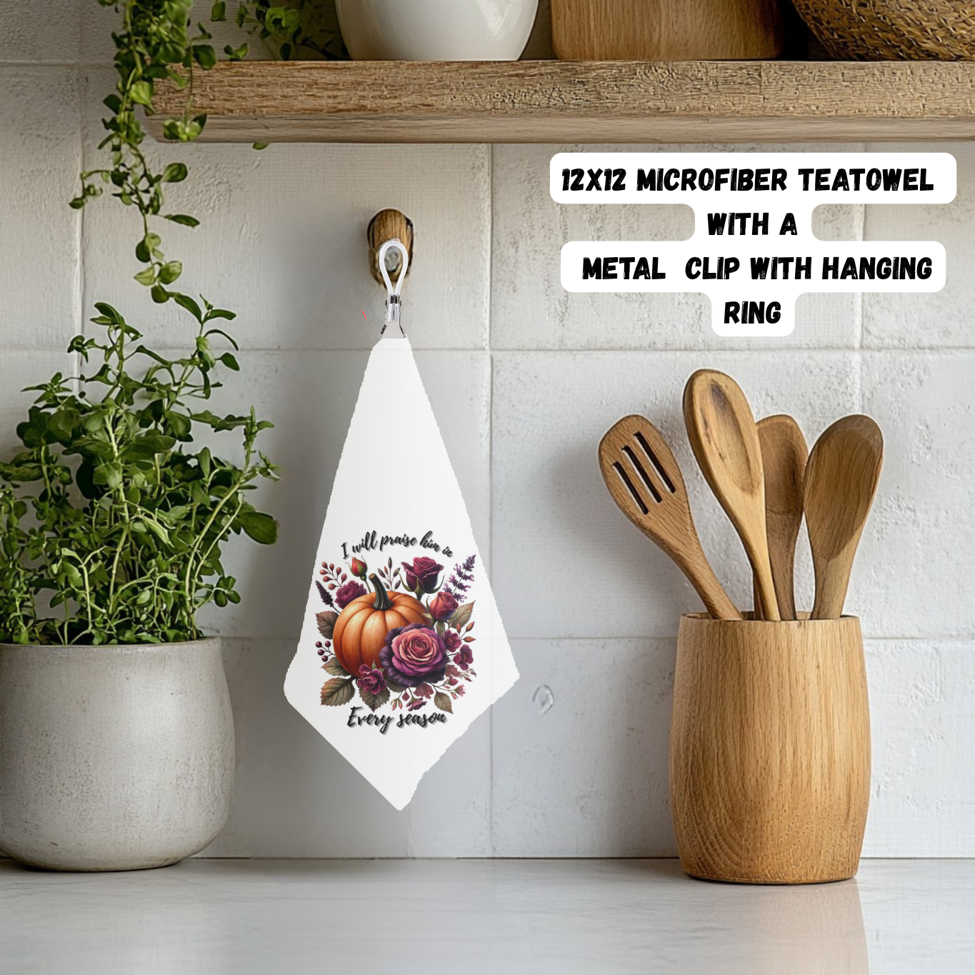 Designed with beautiful pumpkin and floral artwork alongside the uplifting words “I will praise Him in every season,” these teatowels are both practical and decorative.