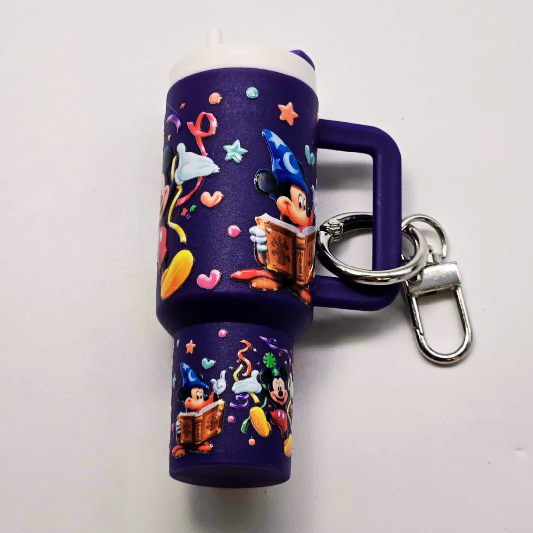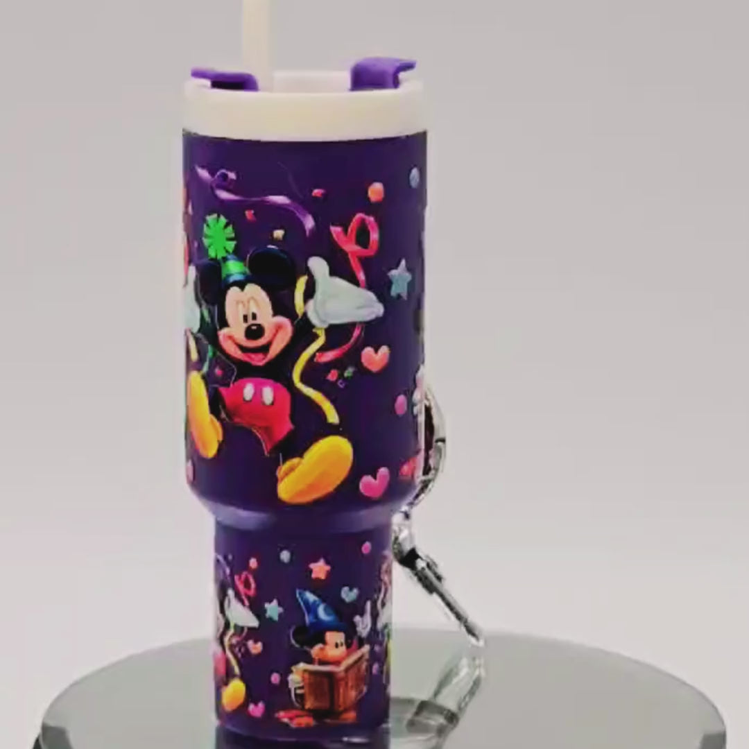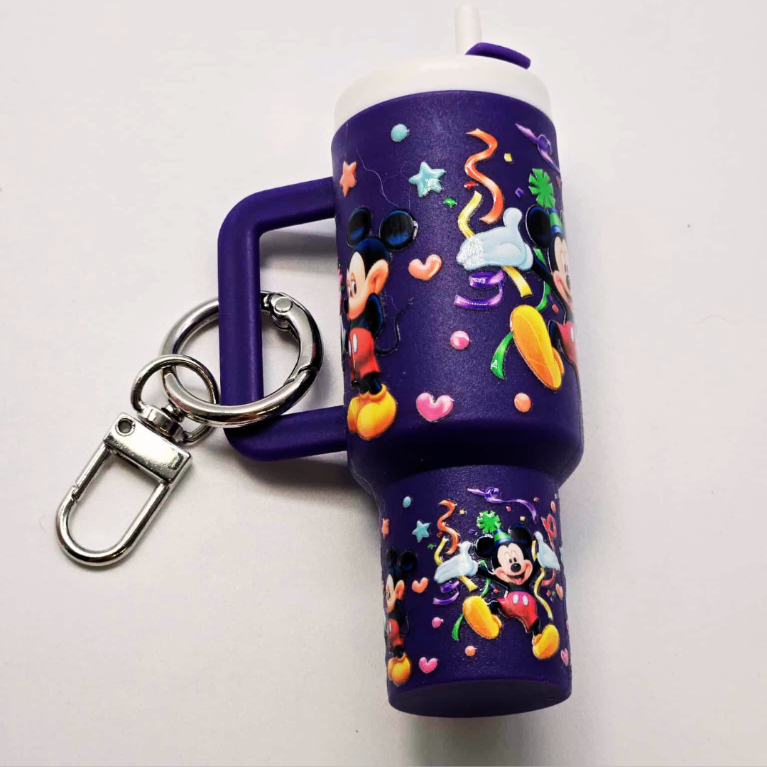 Celebrate fun and functionality with this Purple Character Mini Tumbler Keychain! 🎉 Covered in colorful confetti-style designs and Mickey-inspired artwork, this bold purple tumbler is more than just eye-catching—it doubles as a chapstick holder (chapstick included) and tiny storage container for small essentials. Perfect to clip on backpacks, purses, or keychains, this accessory is both playful and practical for Disney lovers of all ages!
