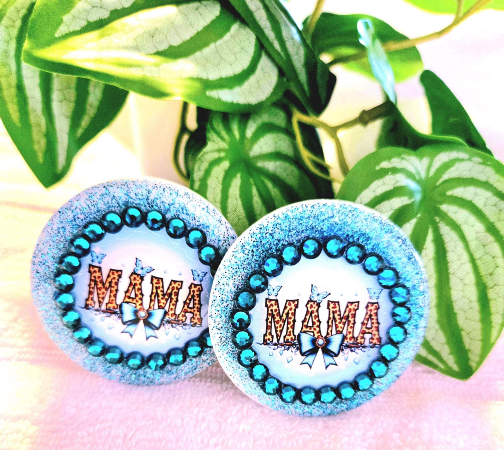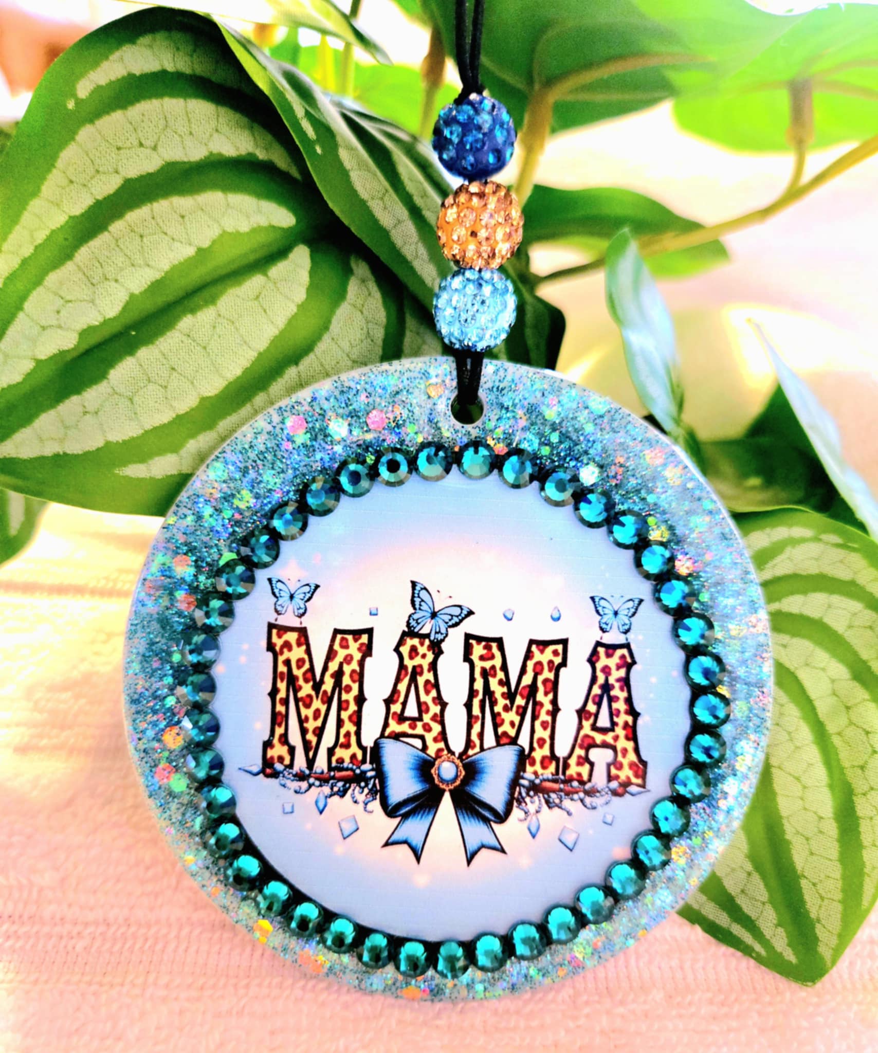 Eye-catching glitter, rhinestone, and leopard βMAMAβ design