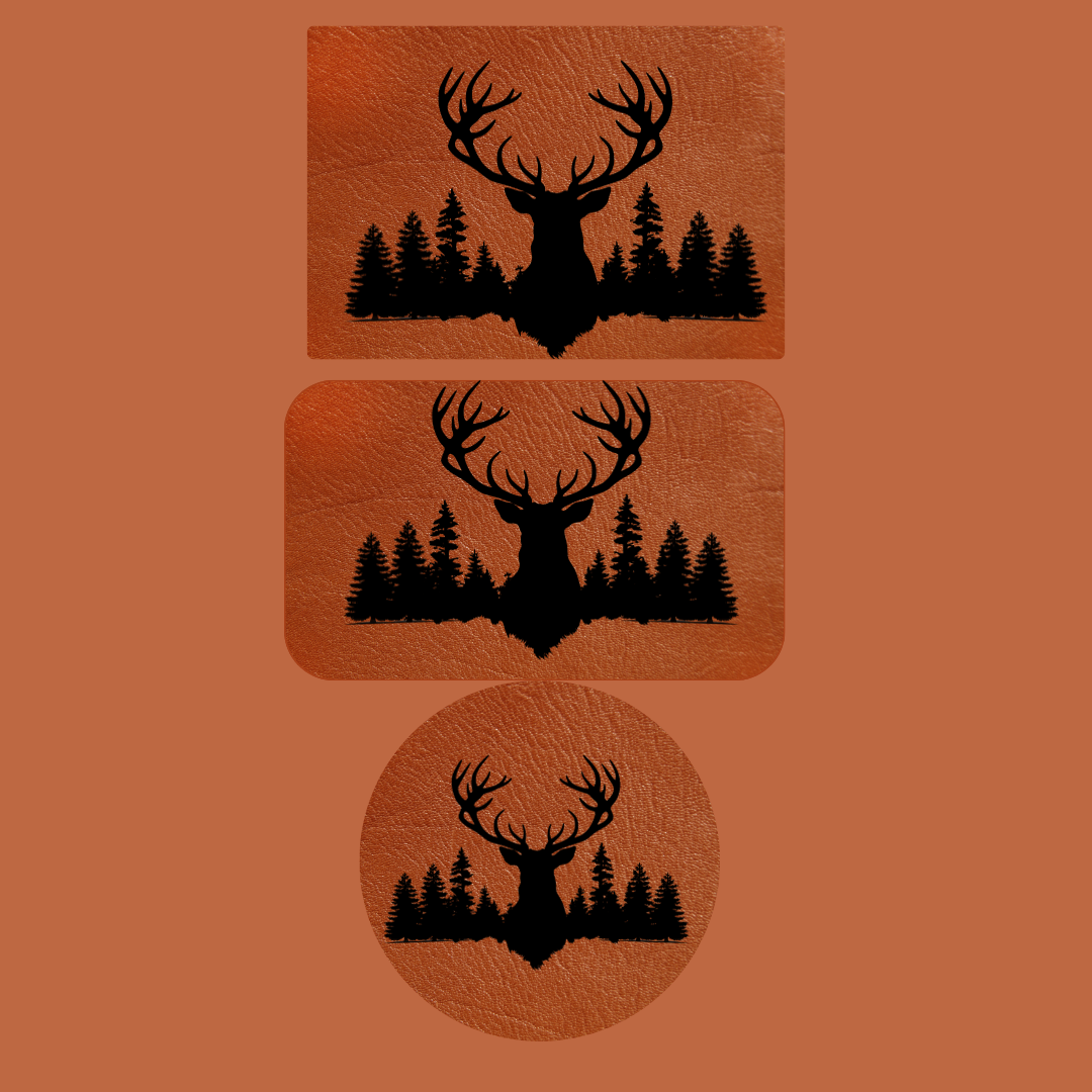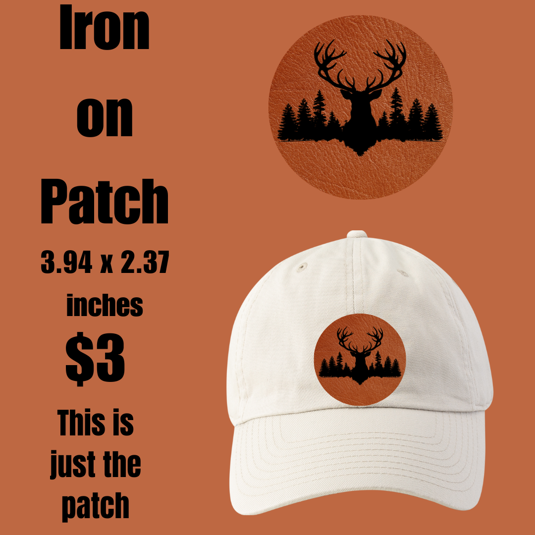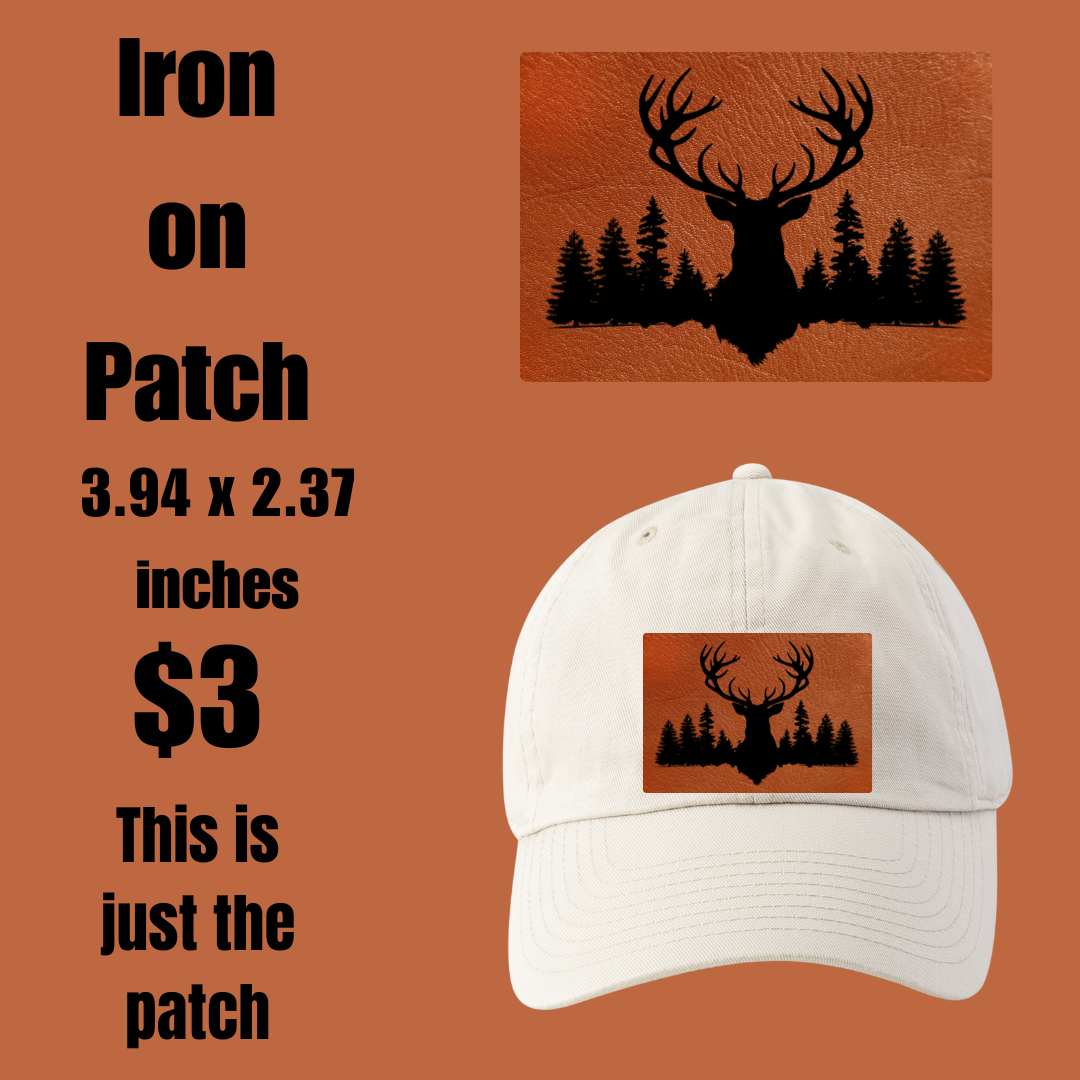 Capture the essence of the great outdoors with our "Silhouette Stag and Pines Iron-on Patch." This beautifully designed patch features the striking silhouette of a majestic stag set against a serene forest of pine trees.