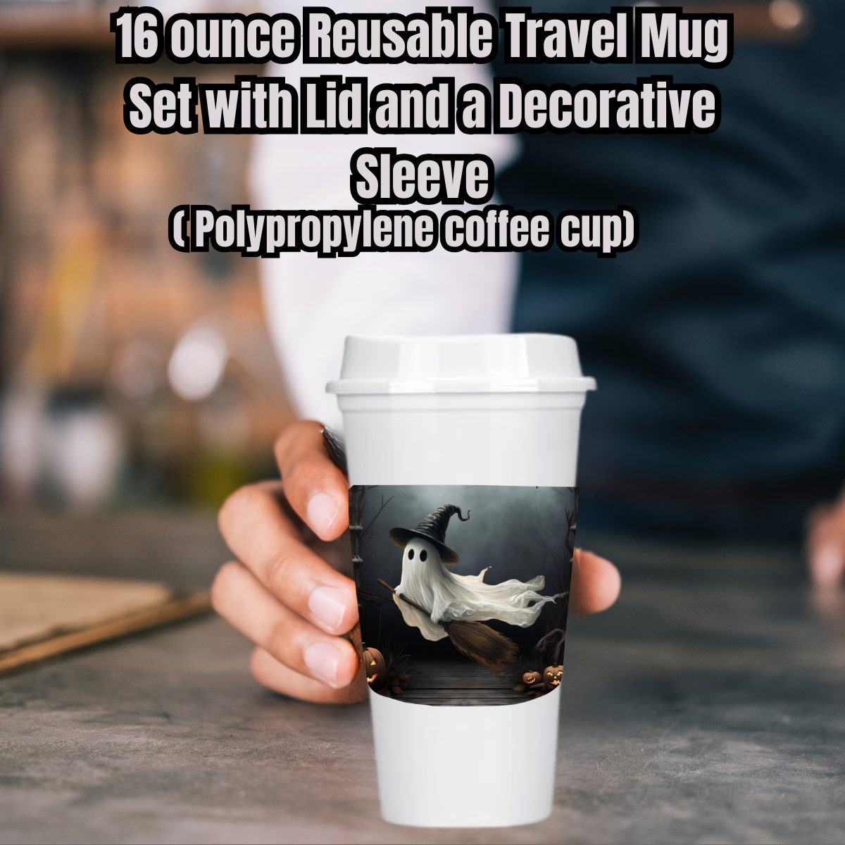 Brew up some Halloween magic with our Spooky Sips 16oz Reusable Travel Mug Collection! Each mug features a durable polypropylene coffee cup, a secure reusable lid, and a decorative Halloween sleeve that adds festive charm to your everyday routine. Perfect for coffee, tea, cocoa, or any drink you love, these travel mugs are both stylish and eco-friendly. Whether you’re rushing out on a back-to-school morning, enjoying cozy autumn nights, or gifting to a fellow Halloween lover, these mugs make every sip feel special. Choose between a sleek black or crisp white mug base – both accented with the enchanting ghost design for a touch of spooky fun.