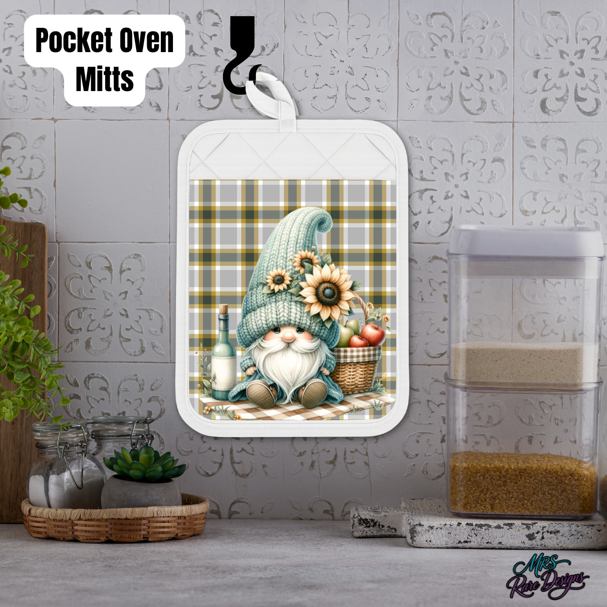Add cozy charm and whimsical farmhouse style to your kitchen with the Sunflower Gnome Cottage Kitchen Baking & Candle Gift Set. Featuring an adorable gnome design accented with sunflowers, apples, and a warm plaid background, this collection brings a rustic, homey feel perfect for any season.