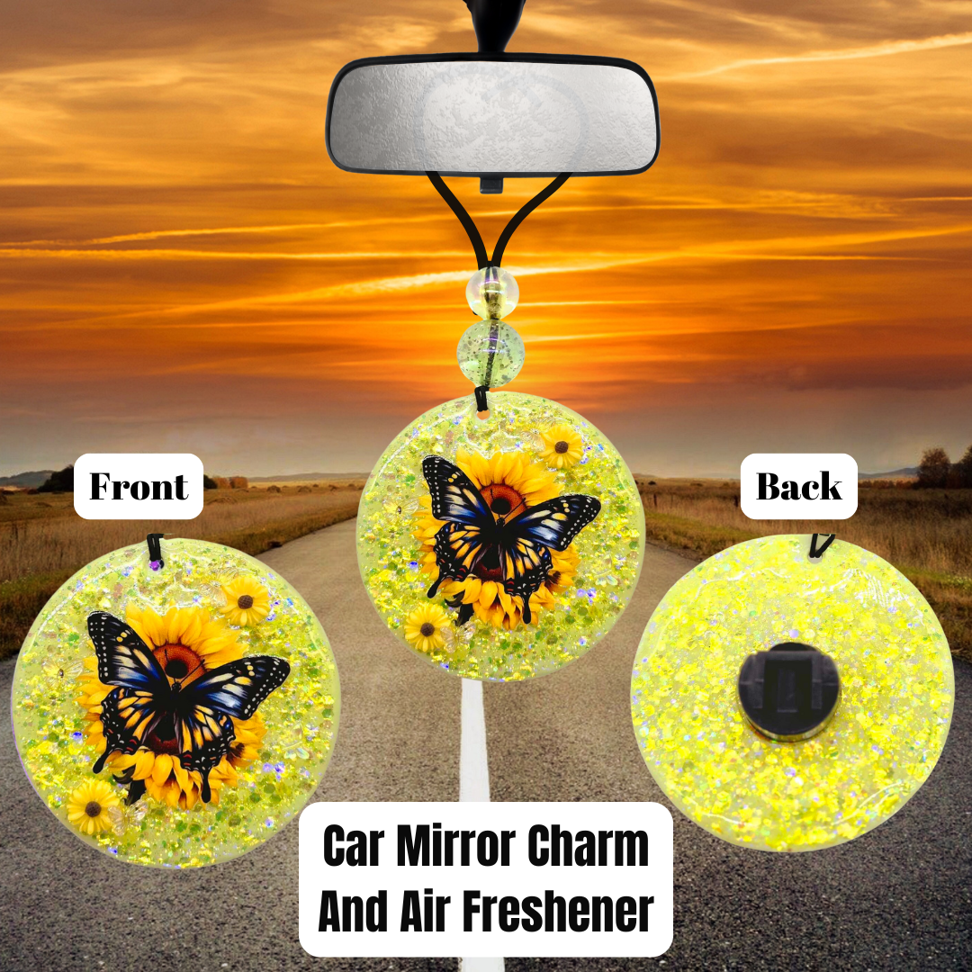 Add a touch of sparkle and the scent of your favorite fragrance to your daily drive with our Sunshine Flutter Car Charm & Air Freshener! 🌻🦋