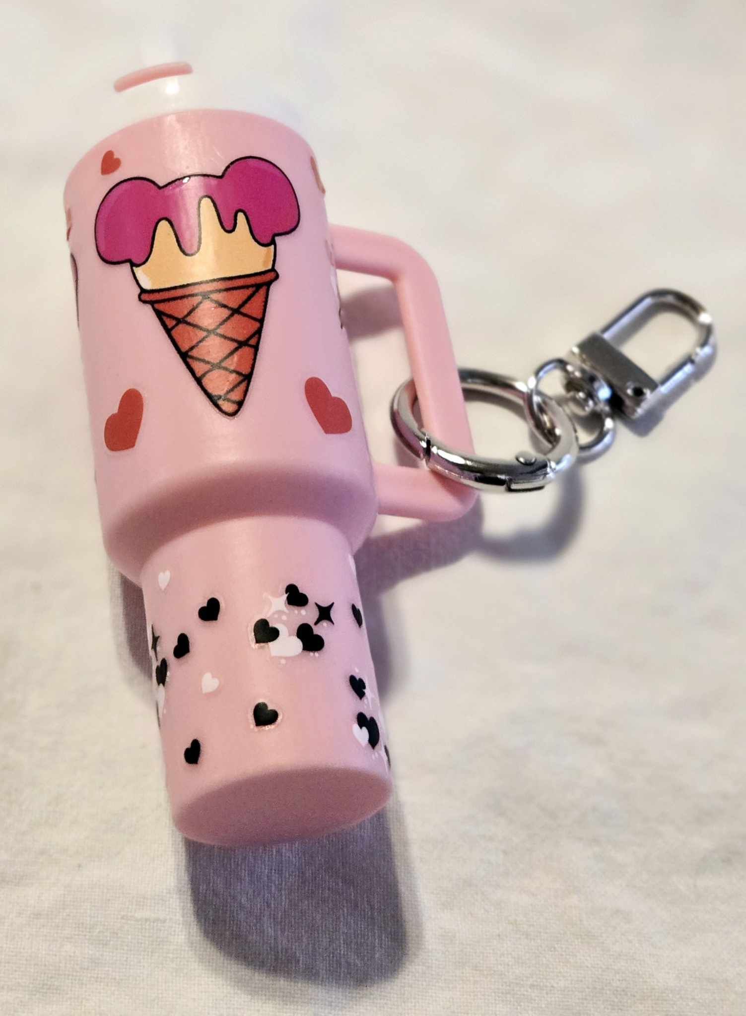 "Dip into sweetness with our Sweet Treats Mini Tumbler Keychain! Adorably designed with a delightful ice cream graphic, this keychain is perfect for those who love to sprinkle a little fun and flavor into their day. Whether you're storing ChapStick, coins, or secret little notes, this tumbler has got you covered. Plus, each keychain comes equipped with a tube of ChapStick, ensuring your lips stay smooth and sweet, just like your style. Attach it to your keys or bag for a charming touch of whimsy on the go!"