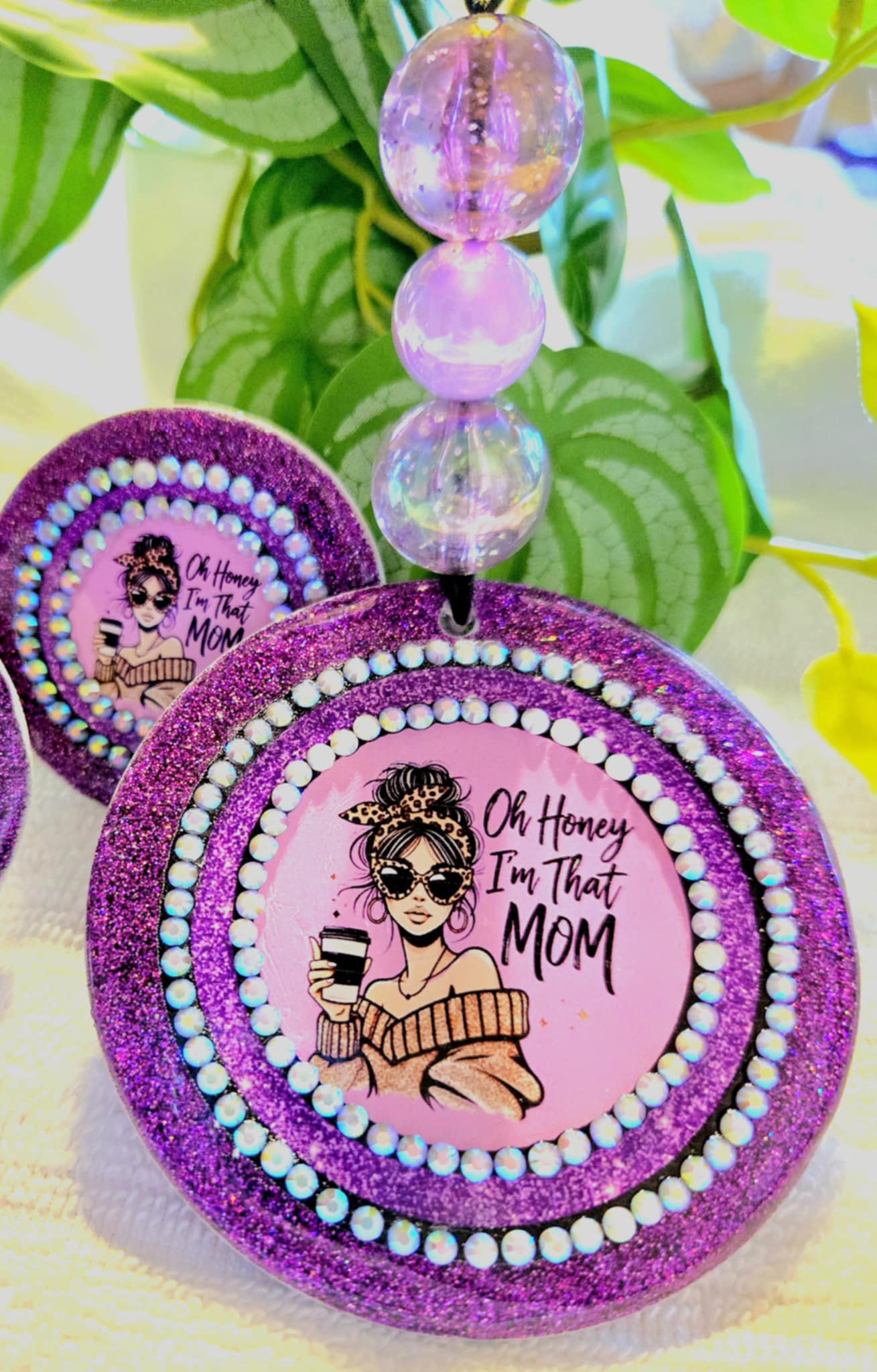 Bring bold mom energy wherever you drive with our That Mom Vibe Resin Car Charms! šāļø Handcrafted with shimmering glitter resin, holographic beads, and vibrant artwork, each charm features the sassy statement "Oh Honey, I'm That MOM"ābecause you are that mom! Choose from purple, teal, or hot pink backgrounds to match your fierce personality or gift it to the mom friend who totally gets it.
