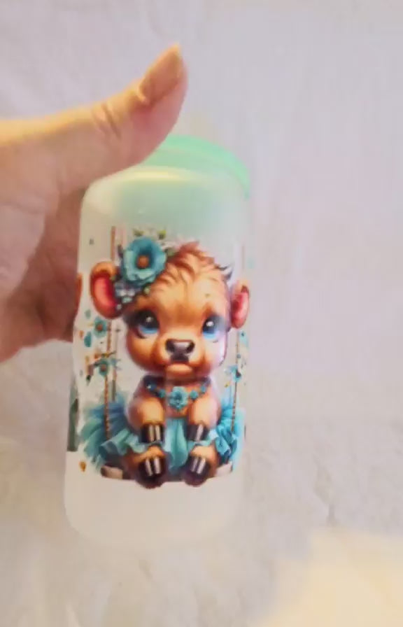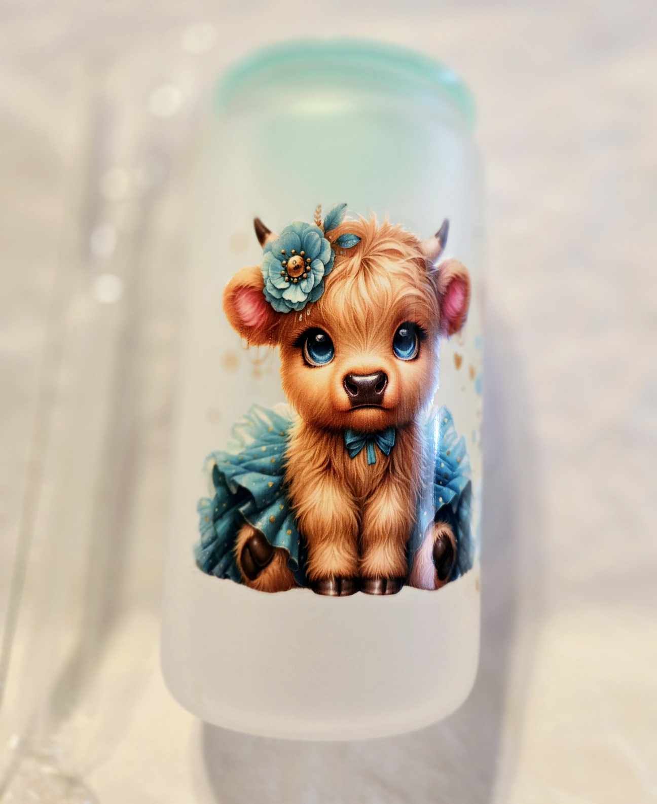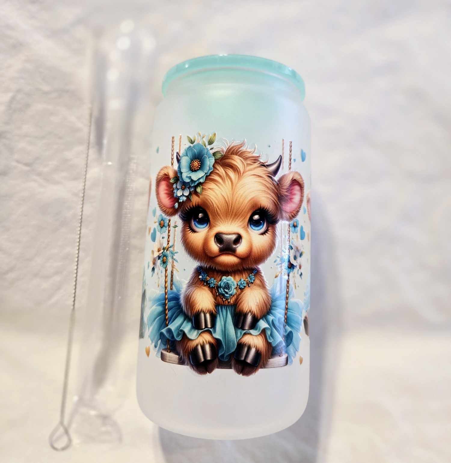 Embrace the charm of the countryside with our Turquoise Blossom Calf Frosted Tumblers. These delightful 16-ounce frosted glass tumblers feature an irresistibly cute calf adorned with turquoise floral accents, evoking a serene, pastoral vibe. The expressive eyes and playful floral embellishments make each sip a joyous experience, perfect for those who love a whimsical and heartfelt touch to their day. These tumblers come complete with a matching turquoise lid, a durable straw, and a straw cleaner for easy maintenance. Ideal for gifts, collectors, or anyone looking to add a bit of pastoral beauty to their beverage routine.